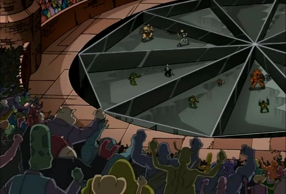 Nachdem die Turtles und der Krieger Baltizar in diesem Turnier jedoch nicht nur siegten, sondern auch Fairness beweisen, wandte sich die öffentliche Meinung geschlossen gegen Nieli, und es kam zu einem Aufstand, in dessen Folge Nieli abgesetzt und verbannt wurde. Anstelle der endlosen Kämpfe bis zum bitteren Ende wurde, angeregt von den Turtles durch deren Erklärung der Olympischen Spiele, ein jährlicher, weit friedlicherer Wettkampf zwischen den besten Kriegern begründet.[1]