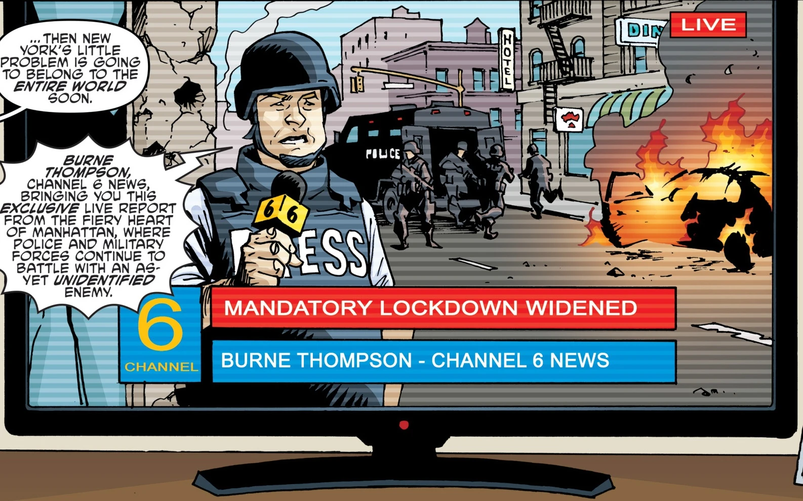 In der IDW-Kontinuität debütiert Thompson als Berichterstatter für Channel 6 über die Invasion der Triceratonier in New York City.[4]
