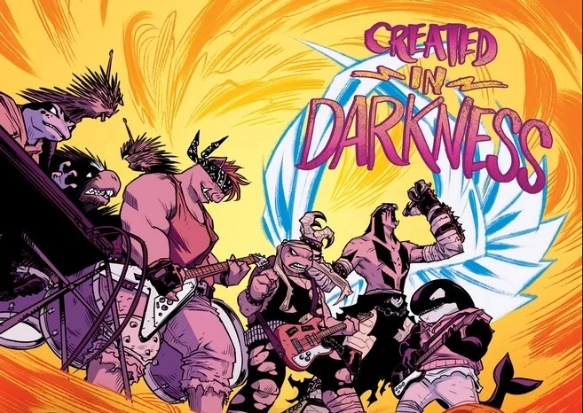 Als später Bebop und Rocksteady während einer Mission in Mutant Town auf den Club stießen und dort zu randalieren begannen, forderte Lita - bzw. ihre erwachsene Version aus der Nullzeit - die beiden zu einem Wettstreit der Bands auf: Sie beide gegen eine von Jennika zusammengestellte Gruppe.[2] Daraufhin rekrutierte Jennika einige Freunde und Bekannte unter Mutant Towns Bewohnern und stellte mit ihnen eine Band auf, welche sie Created In Darkness tauften.[3] Das Debüt der Band in ihrem Wettstreit war so durchschlagend, dass Bebop und Rocksteady das Feld kampflos räumten.[4] Seitdem traf Jennika sich hin und wieder mit der Band zum Üben.[5]