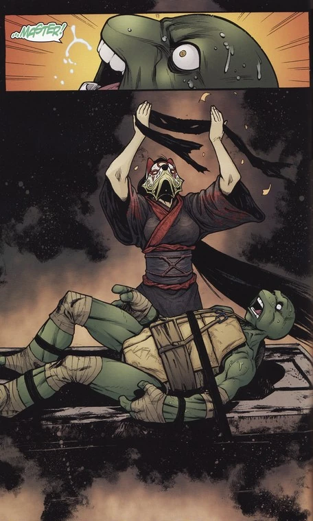 In den IDW Comics wurden die Turtles vom Shredder in eine Falle gelockt, durch die Leonardo zum Gefangenen des Foot Clans wurde.[1] Von der Unsterblichen Kitsune einer mystischen Gehirnwäsche unterzogen, wurde er zum treuen Werkzeug und Stellvertreter des Shredders.[2]