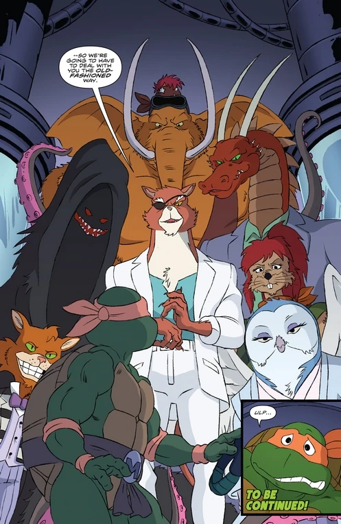 Das Pantheon hat auch einen Auftritt in den Saturday Morning Adventures-Comics. Diese Version ist ein intergalaktisches Verbrechersyndikat, welche die Turtles als Bedrohung für die Ausdehnung ihrer illegalen Operationen auf die Erde anzusehen beginnen, nachdem die Rattenkönigin sie während Mister Oggs Herausforderung in Aktion erlebt hat.[7] Durch die Bemühungen ihres Anführers Hob , der die Erde als einen neuen Jagdgrund für seine Organisation sieht, gelangt das Pantheon schließlich auch in die irdische Dimension, doch Streitigkeiten zwischen Hob und den restlichen Mitgliedern hindern die Gruppe daran, Profit aus der neuen Situation zu schlagen.[8]