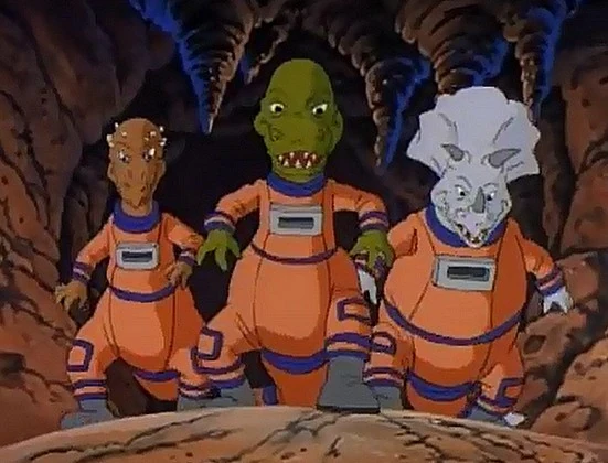 Das Dinosaurier-Trio ist eine Gruppe von anthropomorphen Dinosauriern und Freunde der Turtles in der 1987iger Cartoonserie.
