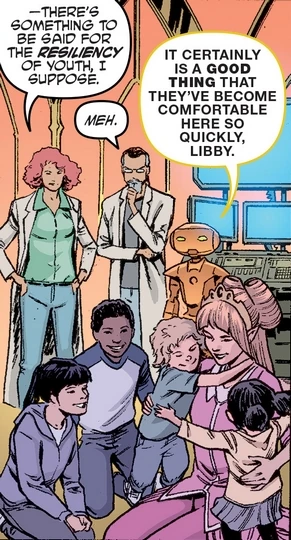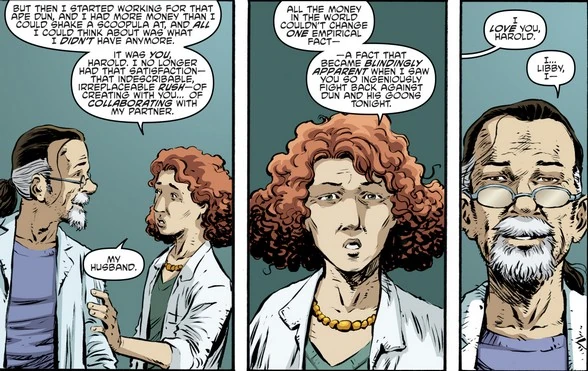 Später jedoch wurden Harold und Libby beim Versuch, der von Karai tödlich verwundeten Jennika zu helfen, von Agent Bishop, Metalhead und der Earth Protection Force gefangengenommen, damit sie ihr wissenschaftliches Genie nun gegen ihre Mutantenfreunde einsetzen sollten.[14] Den Turtles gelang es jedoch, die beiden aufzuspüren und zu befreien, und um sie vor weiteren Nachstellungen der EPF zu schützen, schickten sie die beiden auf den Planeten Neutrino in der Dimension X, wo sie ihnen Asyl gewährt wurde.[15] Später, nach den Ereignissen ums Armageddon-"Spiel" des Rattenkönigs und dem erneuten Waffenstillstand mit dem Foot Clan, kehren Harold, Libby und Professor Honeycutt wieder zur Erde zurück.[16]