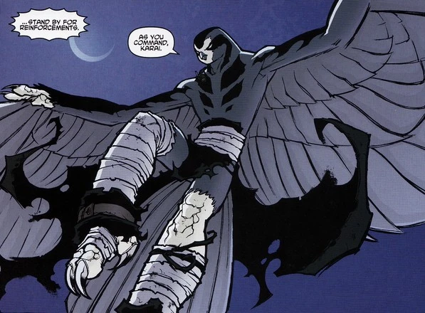 Bei einer weiteren Auseinandersetzung zwischen den Turtles und dem Shredder wurden Koyas Flügel von Leonardo verkrüppelt und ihr Meister Shredder fand den Tod, worauf die Herrschaft des Foot Clans an Splinter fiel.[6] Koya und Bludgeon begleiteten Karai auf eine Selbstfindungsreise nach Japan.[7] Dabei lernte sie die Yakuza Hayashi Natsu kennen, welche Karais neue Gefolgsfrau wurde, fand sie einen Talisman, der von einem fremden, finsteren Bewusstsein bewohnt wurde, von der sie übernommen und mit Flügeln aus Chi-Energie ausgestattet wurde.[8]