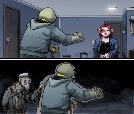 Nicht nur, dass Lao Ban den Nightwatcher erwartet hat,[2] sondern er weiß - dank seiner Verbindungen unter anderem mit Lucia Rosetti - auch ganz genau über Jennikas Geheimidentität und über ihre sozialen Kontakte Bescheid. Als Jennika sich ihm immer noch nicht beugen will, befiehlt Lao Ban seinen Leuten, sich nicht einzumischen; dann entkleidet er sich und fordert Jennika zu einem Zweikampf heraus. Um seine Schreckensherrschaft über Mutant Town endgültig zu beenden, geht Jennika auf diese Herausforderung ein.
