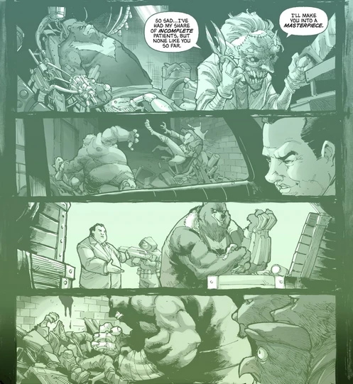 Rückblick: Ein Malaienbär, der Lao Ban getauft wurde, wurde in einem Zoo in New York City untergebracht, nachdem er von Wilderern verkrüppelt wurde. Er hätte ein simples, aber sicheres Leben dort verbringen können, hätte sich nicht eines Tages plötzlich eine Katastrophe ereignet,[1] welche sowohl ihn als auch die Menschen um ihn herum verwandelte und ihm die Flucht aus seinem Gehege ermöglichte.Nachdem er sich von Jasper Barlow mit kybernetischen Ersatzgliedmaßen hat ausstatten lassen, begann Lao Ban sich als Schläger einen Rang auf der Straße zu erkämpfen. Seine Stärke und Kampfgeist fielen Hieronymus Hale auf, der Lao Ban daraufhin mit ultramodernen Waffen ausstattete und ihm so seinen Aufstieg als brutalen Verbrecherboss von Mutant Town den Weg ebnete.