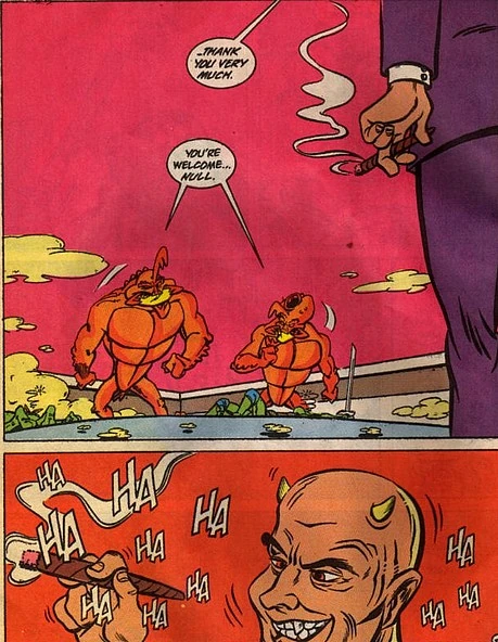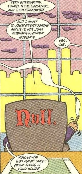 Null war ein schwerreicher, aber vollkommen skrupelloser Industrieller, der sich nur um Gewinne um jeden Preis scherte, ohne über die Konsequenzen seiner Handlungen nachzudenken. Er erschien in den Archie Comics zunächst als typischer gewinnsüchtiger Unternehmer, der aus Gewinnsucht unbekümmert die Umwelt verschmutzen und die tropischen Regenwälder vernichten ließ. Das Böse, das in ihm schwelte, bewirkte, dass er mit der Zeit auf unbekannte Weise mehr und mehr die Gestalt und die Kräfte eines leibhaftigen Dämonen annahm,[2] unter anderem mit der Fähigkeit, die Gedanken anderer zu kontrollieren - besonders von Frauen, welche er als Liebessklavinnen zu betrachten pflegte - niemals als Personen oder gar ernstzunehmende Gegner.[3]