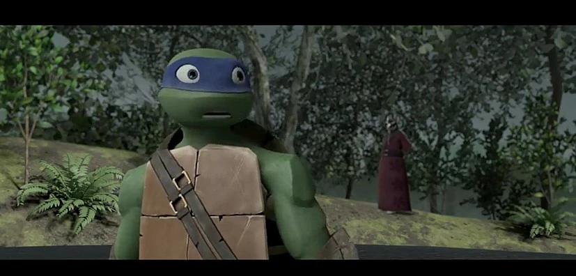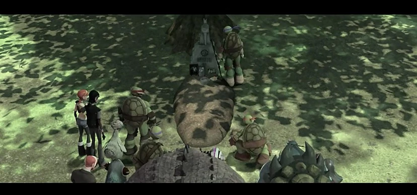 Donatello: Also... was werden wir jetzt anfangen? April: Nun, es wird noch 'ne Menge Feinde geben, die den Platz des Shredders einnehmen wollen. Casey: Tiger Claw ist immer noch da draußen! Der Foot Clan ist immer noch nicht aus dem Spiel, Leute! Michelangelo: Was immer für Böses auch kommen mag, wir werden bereit sein - denn wir sind großartig! Leonardo: Das stimmt, Mikey. Und wir werden es gemeinsam angehen. Nicht wahr, Sensei?