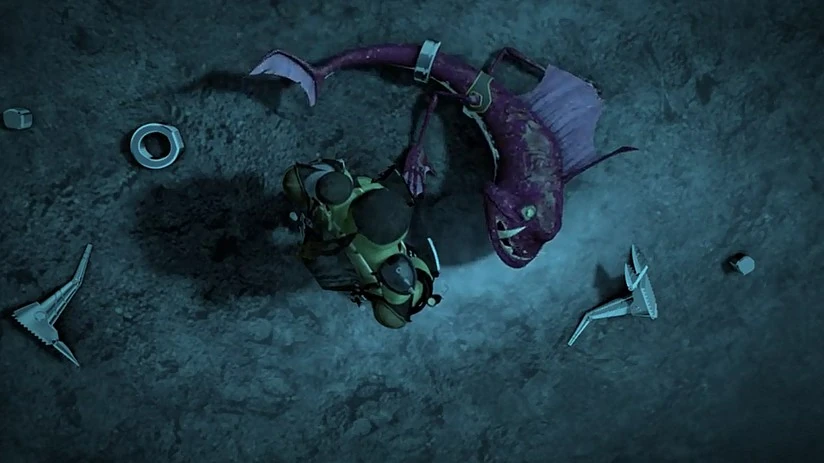 Am Zielort angekommen, schleichen sie sich durch den nächtlichen Wald, der das Haus des Shredders umgibt, doch trotz aller Vorsicht hat der Feind bereits mit ihrem Eintreffen gerechnet. Zuerst werden die Freunde von einer Horde Foot-Bots attackiert, die sie mit Leichtigkeit erledigen können. Doch dann geht eine Schar Elite Foot-Bots gegen sie zum Angriff über und stoßen sie über die Uferklippe eines Sees, in dem Fishface bereits auf sie wartet. Dieser zieht sofort Raphael mit sich unter Wasser, während die Foot-Bots sich die anderen vornehmen. Jedoch hat Fishface Aprils psychische Kräfte nicht mit einberechnet; er wird durch einen telekinetischen Stoß aus dem Wasser befördert, wo Raphael ihn seiner Exobeine und seines Luftatmungssystems beraubt und ihn dann besiegt liegenlässt.