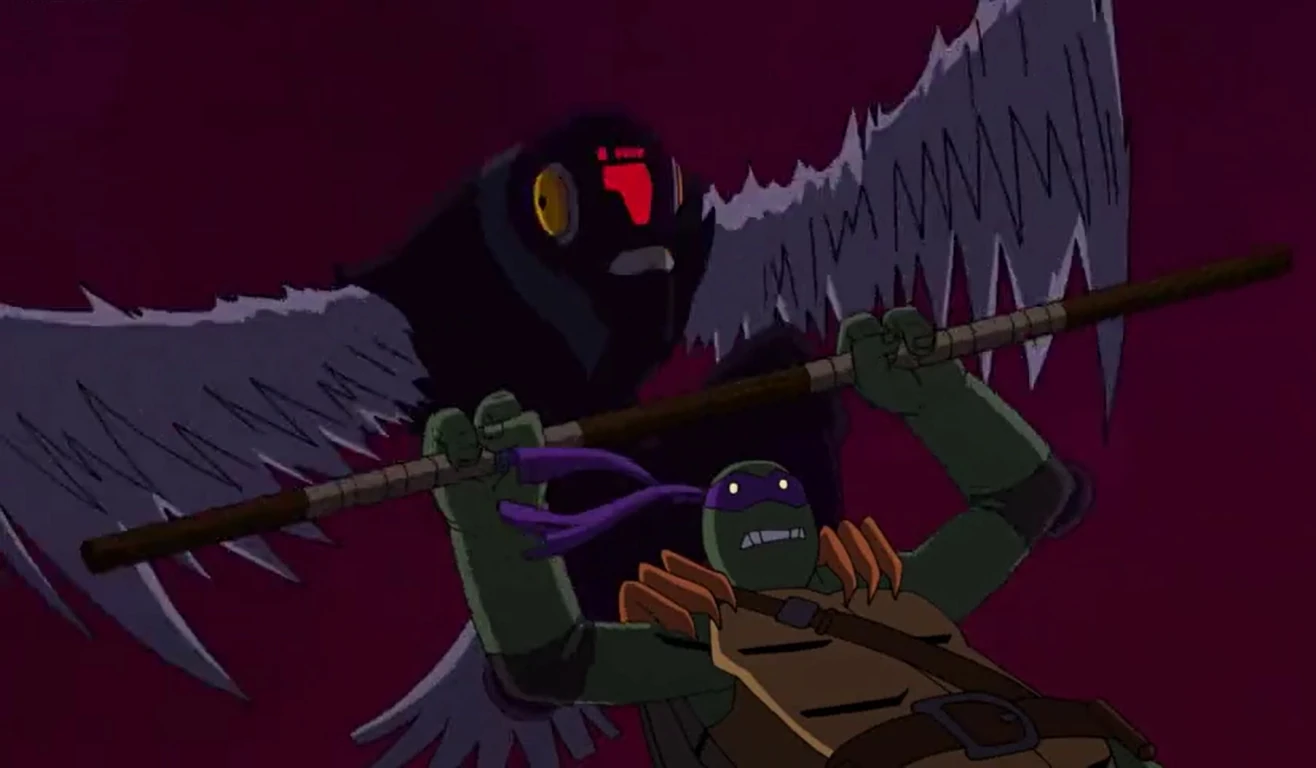 Pigeon Pete mit April und den Turtles