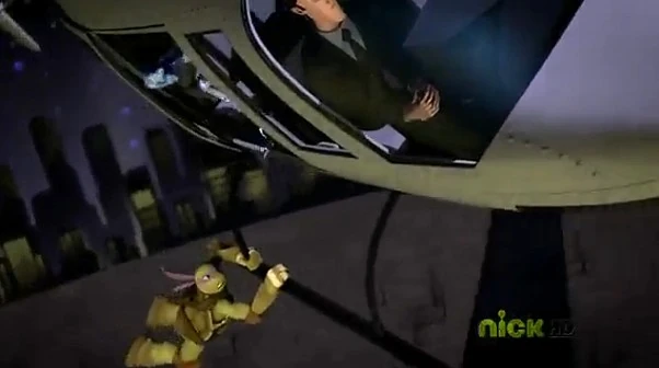 In der Zwischenzeit ist es Donatello gelungen, sich mithilfe seines Stabes zum aufsteigenden Hubschrauber zu katapultieren und an einer seiner Kufen festzuhalten. Einer der Kraang an Bord versucht ihn von seinem Pferch herunterzuschießen, und dafür verpasst Donatello ihm einen Wurfstern in den metallenen Schädel. Doch während der Kraang abstürzt, schießt er wild mit seinem Blaster um sich und trifft dabei mehrmals den Hubschrauber, und bei der Schüttelei durch die Treffer wird April aus dem Hubschrauber geschleudert. Donatello wirft sich kurzentschlossen hinterher und kann sie retten, doch dafür kann der Huschrauber mit Aprils Vater an Bord entwischen. Die Turtles und April flüchten vom Gelände, doch nun sind die Kraang zum Schluss gekommen, dass die Turtles viel zu gefährlich für ihre Pläne sind. Und es stellt sich auch heraus, dass Snake Weed nicht ganz so erledigt ist, wie sie alle zuerst gedacht haben mochten ...