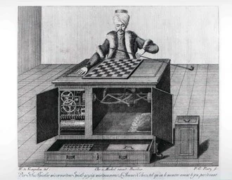 Zwischen dem späten 18. und dem frühen 20. Jahrhundert erregte der "Schachtürke", ein von Wolfgang von Kempelen (1734–1804) konstruierter Automat, der angeblich perfekt Schach spielen konnte, weltweite Aufmerksamkeit. Bei dieser Konstruktion handelte es sich jedoch um einen Betrug, da der mechanische Spieler aus dem Inneren heraus von einem versteckten Schachspieler gesteuert wurde.