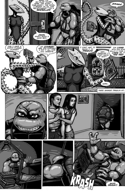 April kümmert sich währenddessen um Casey, der noch mit seiner Enttäuschung über seine verflossene Belohnung und seinem verlorenen Job nachhängt.[4] Da April dank des Appartmenthauses in ihrem Besitz noch ein festes Einkommen hat,[5] brauchen sie der Zukunft nicht allzu trostlos entgegenzusehen, und sie verspricht Casey, dass sie zusammen eine Lösung finden werden. Da kommt Shadow zu ihnen, die von einem Albtraum geweckt wurde, der sie um ihre Turtle-Onkels besorgt macht.