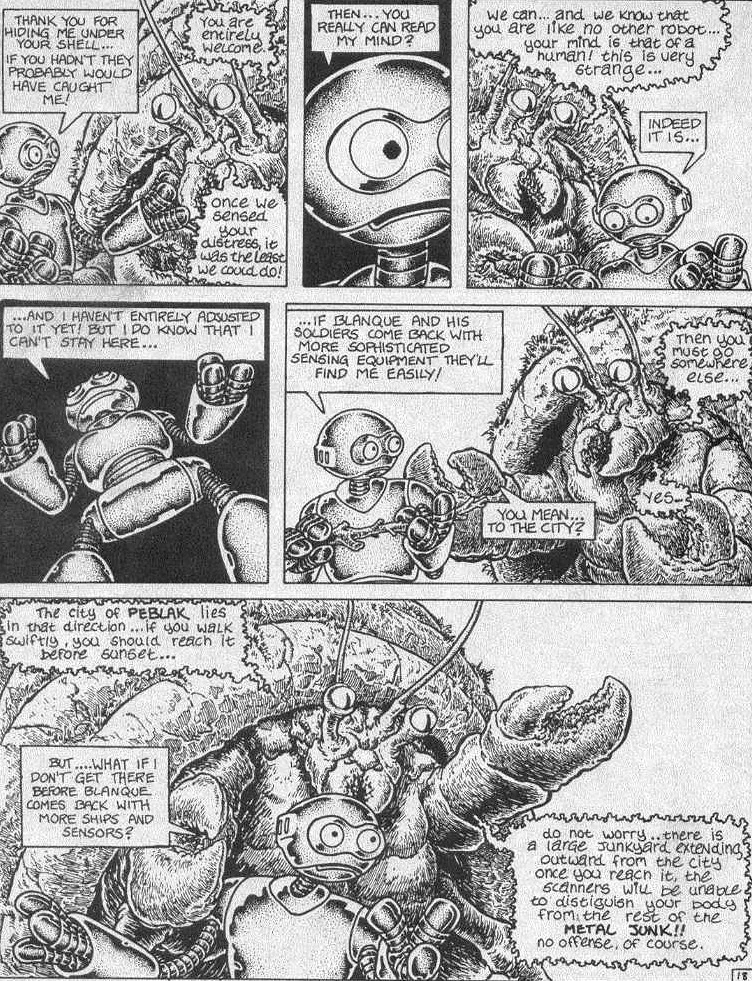 Zurück im Gernisonshauptquartier der Föderation in Peblak beginnt Blanque seine frenetischen Befehle zur Suche nach dem Fugitoiden zu geben, sehr zur Verwunderung seiner Assistentin Lonae. Schließlich sieht Blanque sich gezwungen, ihr unter dem Siegel der strikten Geheimhaltung zu erklären, was es so Besonderes mit diesem flüchtigen Roboter auf sich hat ...