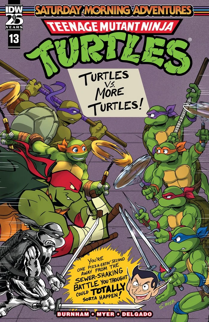 Im ersten Panel der Hauptgeschichte schwingen einige Zuschauer in Oggs Arena einen Satz Wimpel mit der Aufschrift "Go Ninja, Go Ninja, Go!", dem Refrain des Vanilla Ice-Songs "Ninja Rap" zum Film Turtles II.