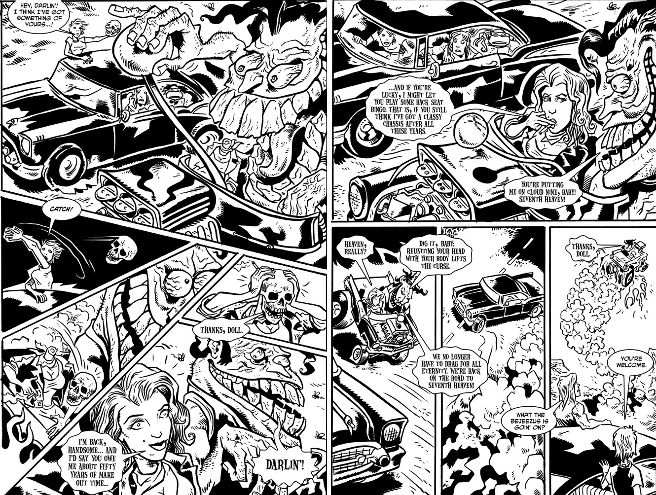 Eines Nachts aber begegnete von Clutch Casey Jones, dessen Tochter Shadow und dem Mutant Michelangelo, nachdem diese von einer Gedenkstunde an Shadows verstorbene Mutter zurück nach New York fahren wollten. Casey ließ sich von von Clutch zu einem Rennen provozieren, welches er höchstwahrscheinlich verloren hätte. Jedoch hatte Shadow kurz vor ihrer Begegnung mit von Clutch einen menschlichen Schädel gefunden - Darlin's Kopf, den sie bei ihrem Unfall anscheinend eingebüßt hatte. Als Shadow die kopflose Darlin' in von Clutchs Wagen sitzen sah, kam sie auf die Idee, Darlin' ihren Kopf wieder zurückzugeben. Durch diese Tat wurde der Fluch gebrochen, und von Clutch, Darlin' und die anderen Geistermotoristen vergingen in Frieden.[1]