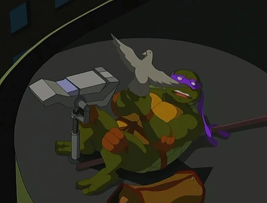 Michelangelo: Ich frage mich, was mir mehr Sorgen macht: Dass das tatsächlich funktioniert, oder dass Don eine Taubenhandpuppe mit sich führt.